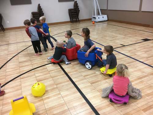 We get together once a week at the LCC Family Life Center on Wednesday from 10AM - 11:30AM (or whenever we decide to leave) and simply enjoy one another's company . Typically, we have a short devotion or lesson at the end that's meant to encourage. It's also a great opportunity for our kids to play together and run some energy off!