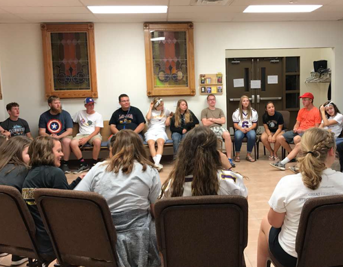 The student ministry accomplishes these goals by giving students opportunities to practice four core values: spend time with others, spend time with God, use their gifts, and share their story.